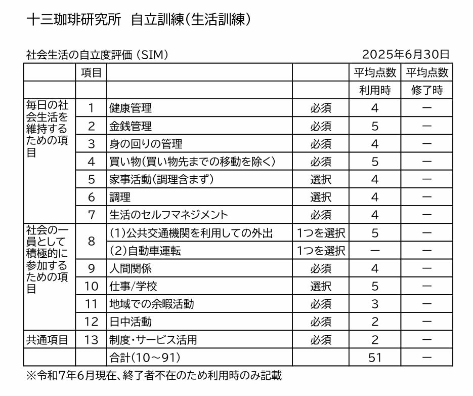 社会生活自立度評価表(SIM)評価結果について
