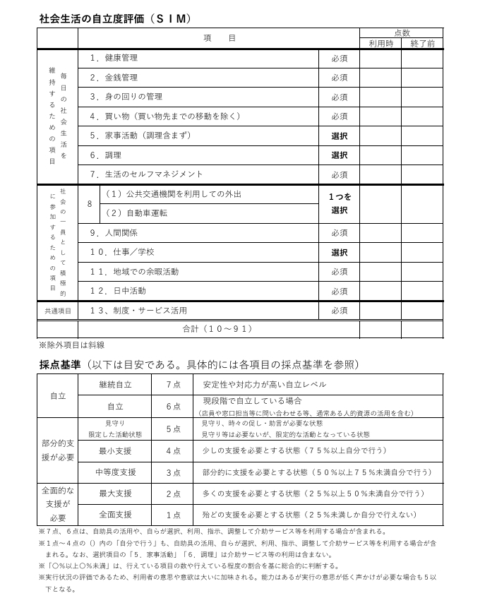 社会生活自立度評価表(SIM)について